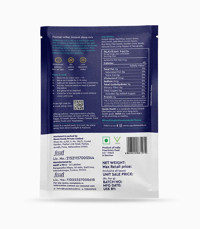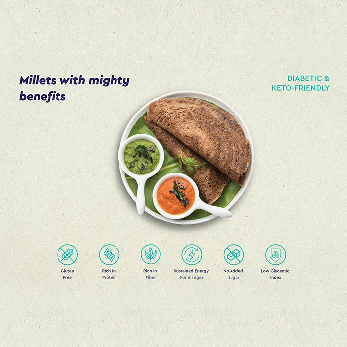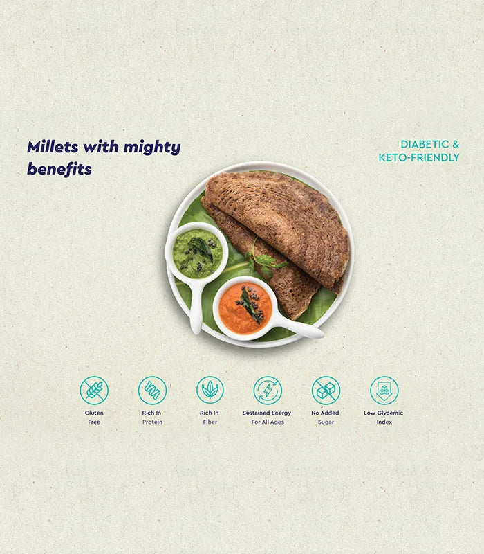 Give your family a nutritious start with our Foxtail Millet Dosa Mix! Made with wholesome foxtail millet, this dosa mix lets you serve up crispy, golden dosas that are packed with nutrients.