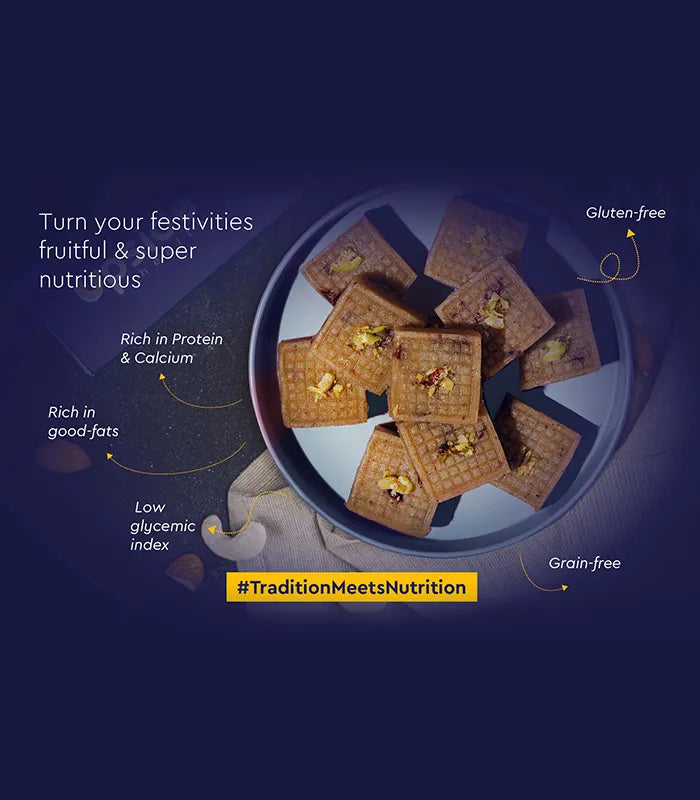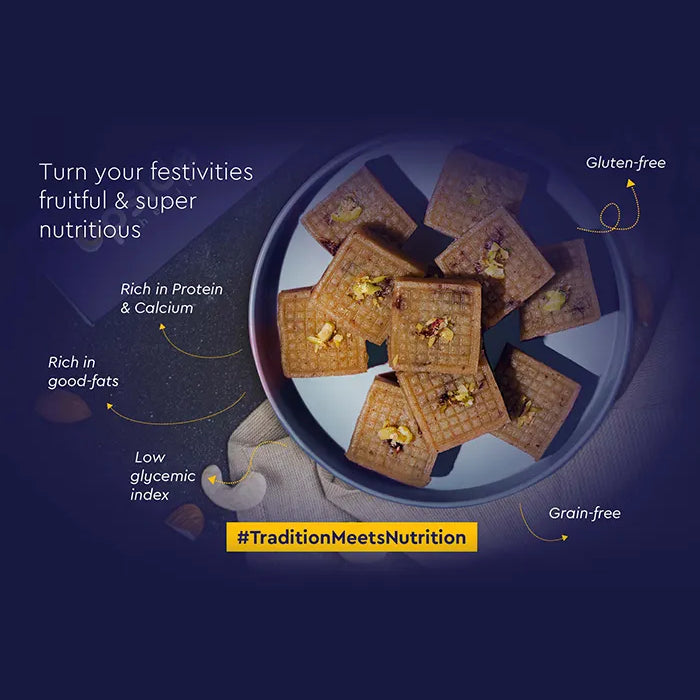 Think soft, velvety barfi infused with premium nuts, bringing a perfect balance of texture, flavor, and nostalgia. High in protein and healthy fats, it’s the sweet treat that lets you indulge smarter.