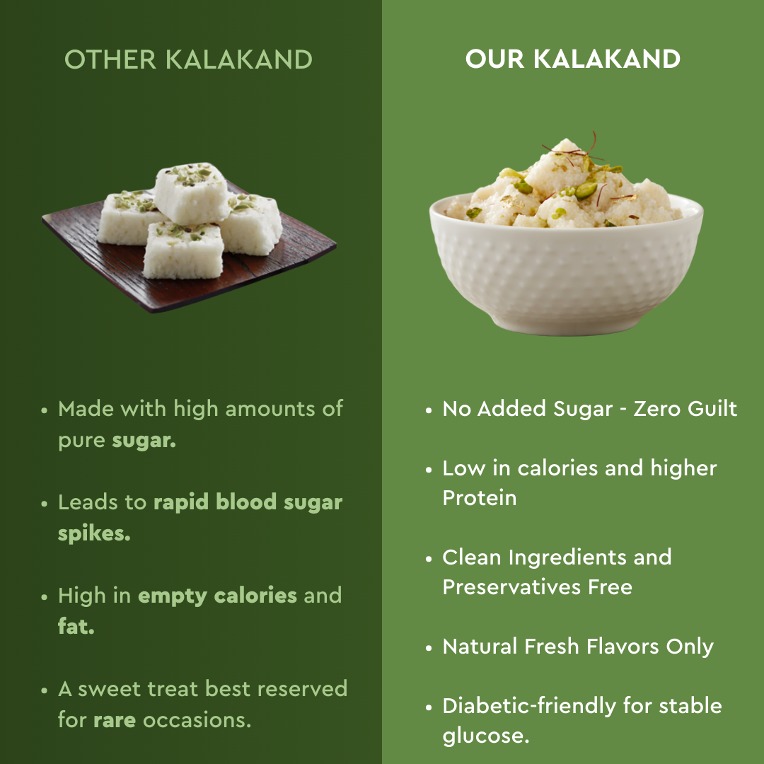 Made with Paneer, dry Fruits, Fresh Cream and Stevia based sweetener with no after taste it satistifies your sweet tooth so much that you wont belive that this is preservatives free and sugar free- alternative to sweets