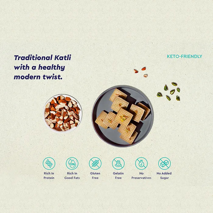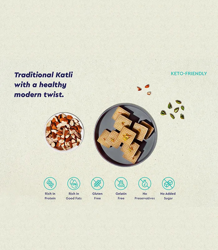 Think smooth, melt-in-your-mouth katli packed with protein and healthy fats, blending childhood memories with health-conscious ingredients. It’s sweetness redefined—delicious, nourishing, and utterly satisfying.