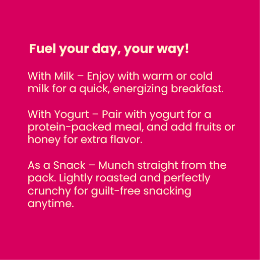 It's like a bowl of natural goodness that’s high in fiber, loaded with minerals, and bursting with flavor. Whether it’s paired with milk for a power-packed breakfast or enjoyed straight out of the box as a snack, it’s always a win.