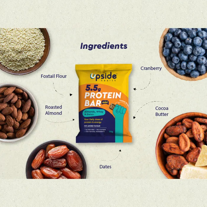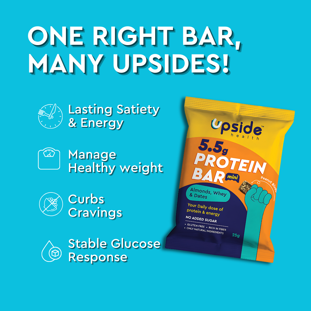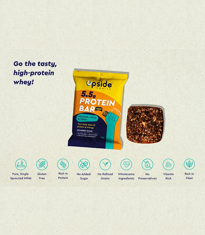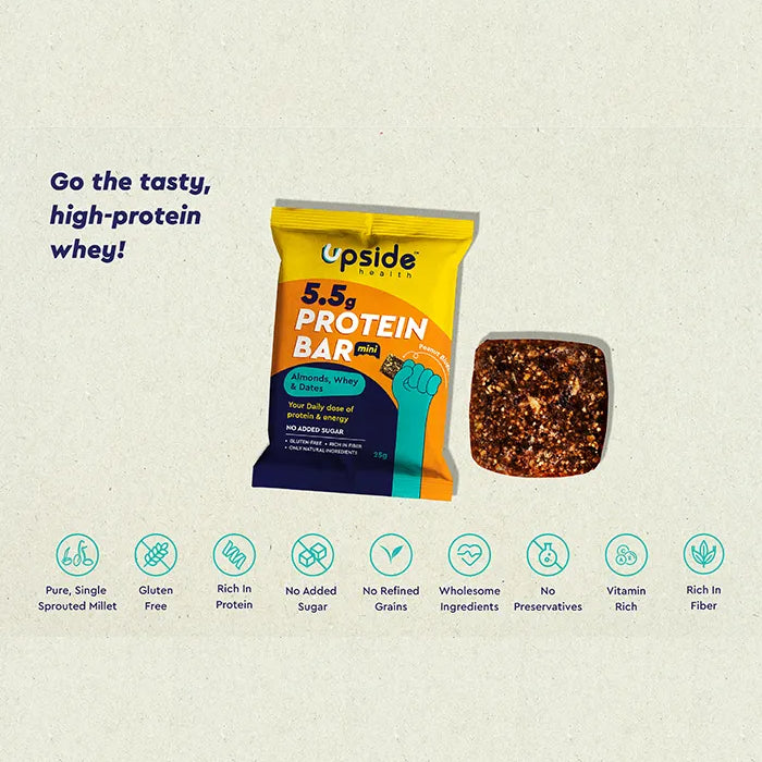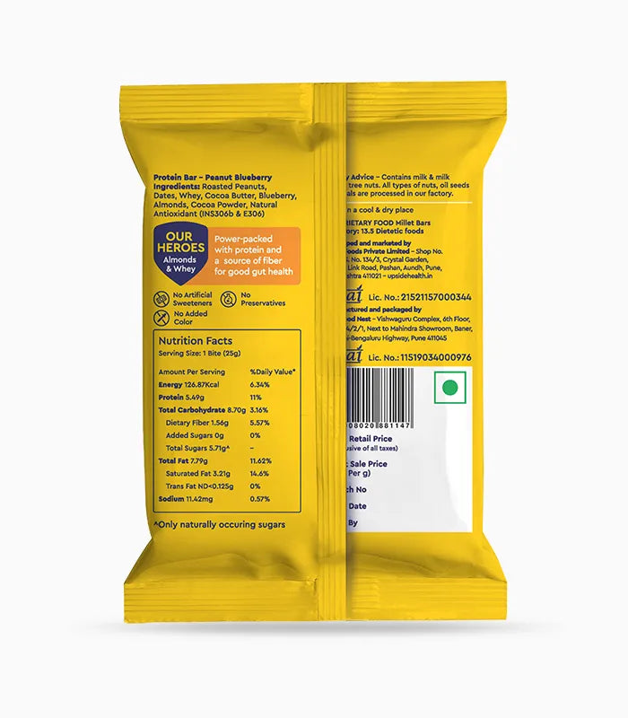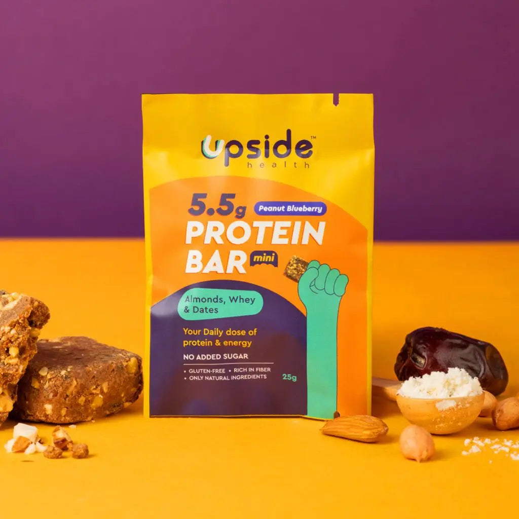 Protein bar but make it delicious. That's Upside Peanut Blueberry Protein Bar Bites for you! Creamy peanut goodness meets juicy blueberries, all powered by nutrient-packed millet for a snack that’s as wholesome as it is satisfying.
