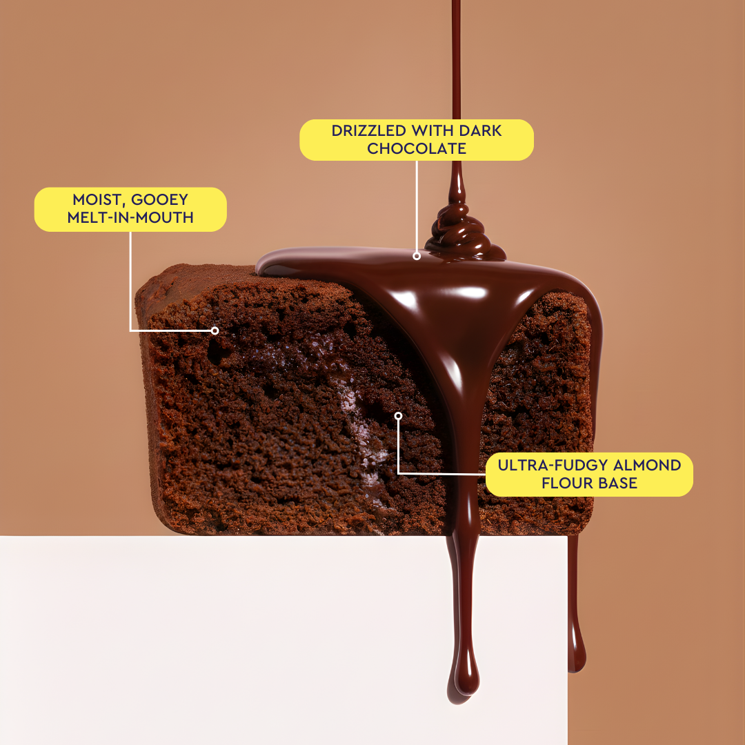 A Classic eggless chocolate brownie made with almond flour, dark chocolate, cocoa solids that is so gooey and rich that it instantly melts in your mouth and makes you think is that really healthy? It is actually Guilt Free with 7gms of protein per 50gm.