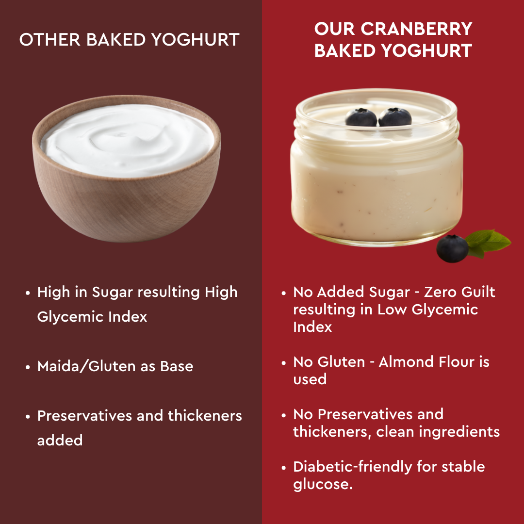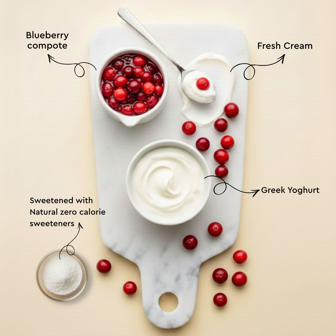 Our Yoghurt is baked and made from Hung Curd, cream, and Stevia-based Sweetener with no aftertaste - can be enjoyed any time with no guilt.