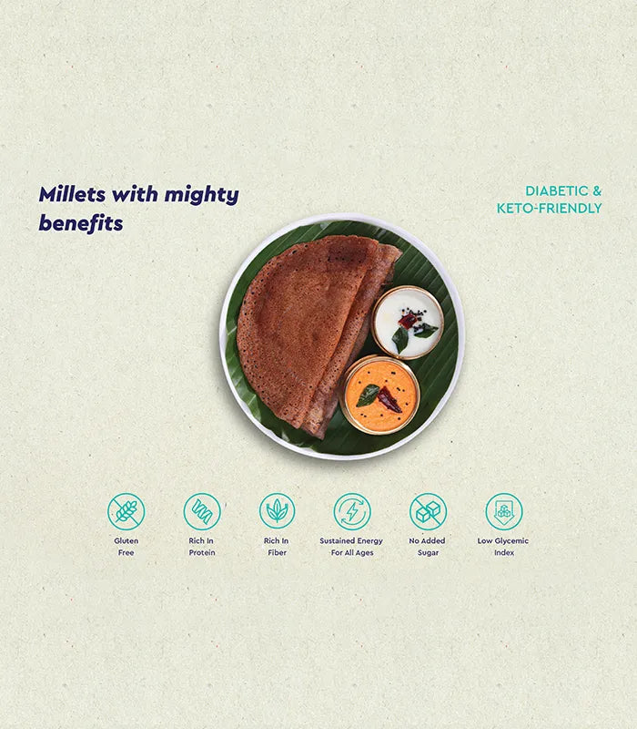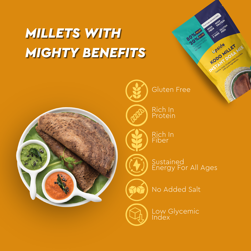Serve up some superfood with our Kodo Millet Dosa Mix! Packed with antioxidants and fiber, Kodo millet makes this dosa mix a must-have for moms who want to level up family meals.