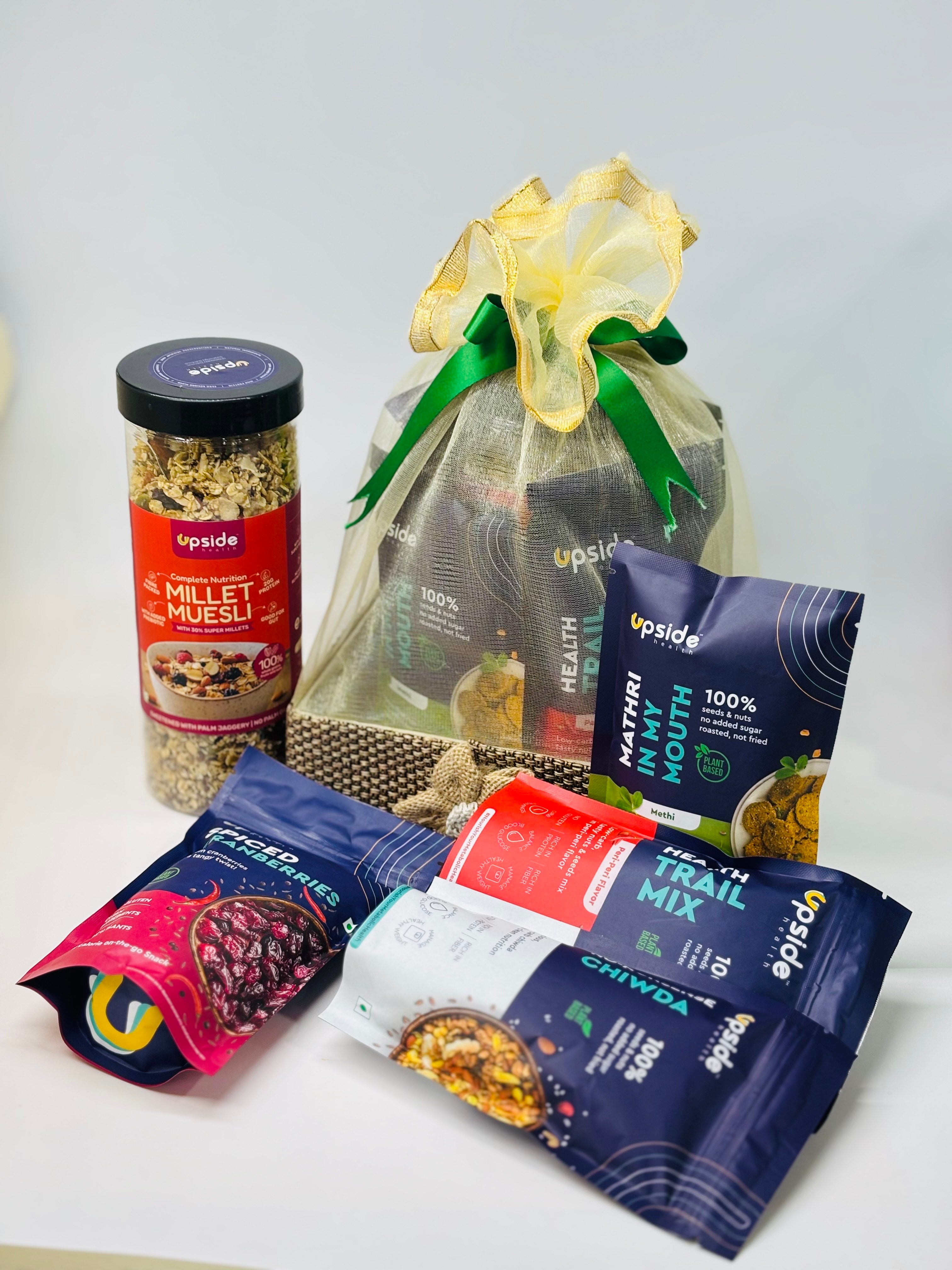 Our Premium Gift Hamper consists of our snacks Bestsellers - tasty yet guilt free packed with high Fibre and Proteins